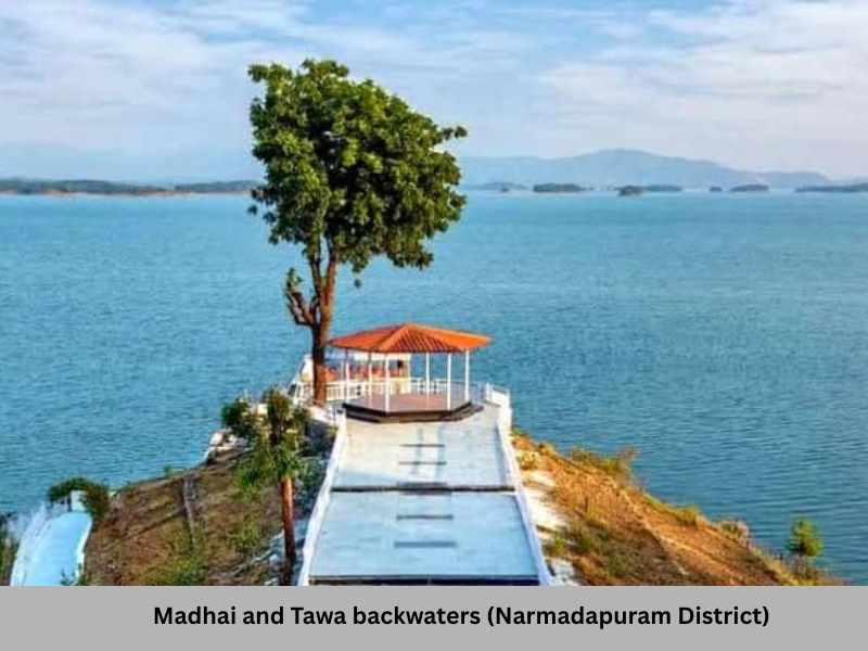 A little downstream, at Bandrabhan, Narmada meets its important tributary Tawa, on the southern banks. Tawa, 172 km in length, which originates from Satpura in Betul district and as it approaches the meeting point it widens very considerably and has a rich sandy bed. Tawa has two dams on it. The first is near the Thermal Power Plant and coalfield of Sarani and its water is used to service the power plant. But it has a second and a considerably larger number dam reservoir amidst very scenic backwaters with deep forested Satpuras on the larger part of the periphery, with Pachmarhi’s high peaks on the east. The Tawa dam backwaters have developed into a prominent tourism site called Madhai, and expensive tour packages are offered that include stay, jungle safaris, trekking etc. The forests in this part of Satpura are rich with wildlife and are preserved in form of Satpura reserve forests. The Tawa becomes very wide and has the longest riverine road bridge in MP between Narmadapuram and Babai – the birth place of the renowned Hindi poet Makhanlal Chaturvedi, whose poem ‘Pushp ki Abhilasha’ is read by every school-going child in the Hindi belt and whose literary works like ‘Him Kiritini’ and ‘Him Tarangini’ that have enriched Hindi literature. There is now a major university of Journalism in name of Makhanlal Chaturvedi located in Bhopal.