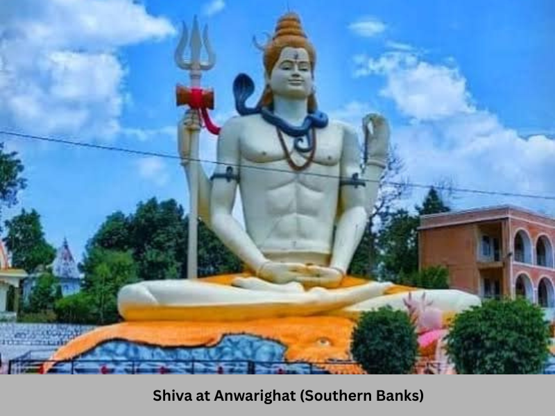 Further downstream, one reaches the Anwarighat, a very important ghat after Budhni on the northern banks – there is another ghat by that name on the southern banks as well. There is a wide road bridge connecting the banks here. The Anwari Ghat on the southern banks has a very large statue of Lord Shiva and several temples and ashramas.