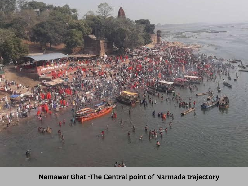 Since Nemawar and Handia are exactly the central point in Narmada’s course from Amarkantak to the sea, a small rock between the two banks, that remains above the water surface except during the rainy season, is called the ‘Nabhi-Sthal’ of Narmada. People go on boats to offer their worship at this place.